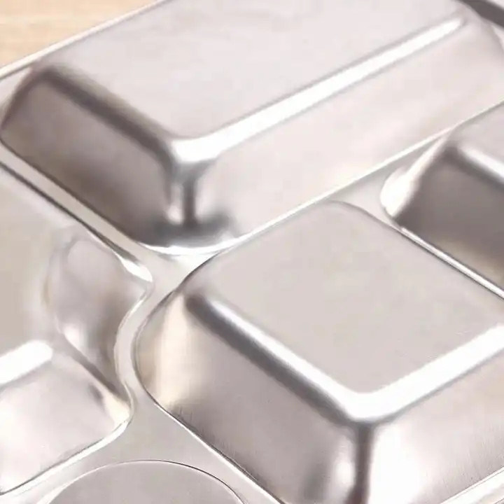 το δίσκο για ταχυφαγεία από ανοξείδωτο χάλυβα είναι κατασκευασμένο από υλικό από ανοξείδωτο χάλυβα SS201 και SS304 τροφικής ποιότητας που υπόκειται σε αυστηρό έλεγχο ποιότητας.με λαμπερό ασημένιο χρώμα και εύκολο στο καθαρισμόΤο υλικό από ανοξείδωτο χάλυβα με σταθερή απόδοση εμποδίζει το δίσκο τροφίμων από ανοξείδωτο χάλυβα να αντιδράσει με τα τρόφιμα και να επηρεάσει τη γεύση.Πιο παχύ και πιο βαθύ δίσκο γρήγορου φαγητού μπορεί να περιέχει περισσότερα τρόφιμα και σούπα διαθέσιμαΑνθρωποποιημένο φλάντζερ που προστατεύει τα χέρια μας από τραυματισμούς και υπάρχει κάλυμμα από ανοξείδωτο χάλυβα ή κάλυμμα PP για να διαλέξετε.