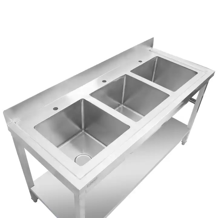 Προσαρμοσμένο ατσάλινο νεροχύτη Τραπέζι Τριπλό Κουζίνα νεροχύτη