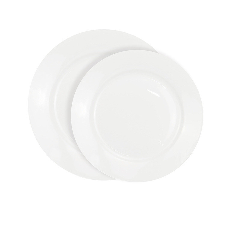 Ζεστή πώληση καθαρό λευκό ξενοδοχείο δυτικό φαγητό επίπεδη πιάτο φεγγαρόφωτο πιάτο κεραμική πλάκα